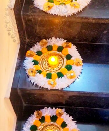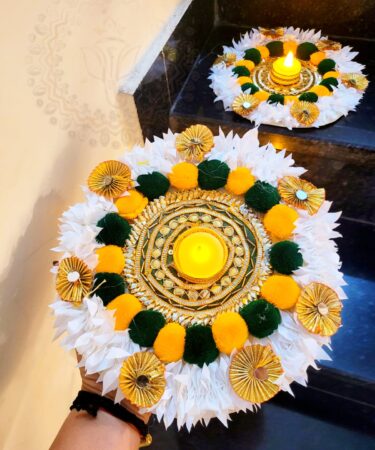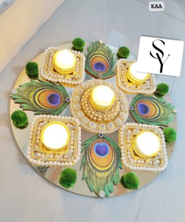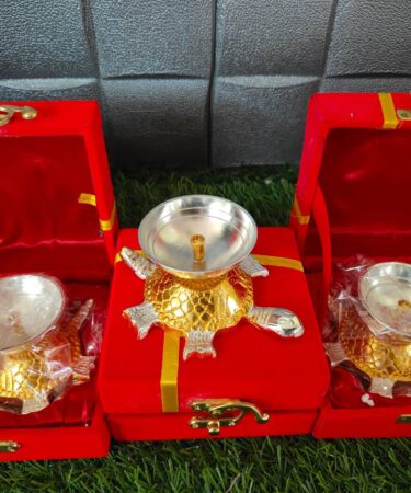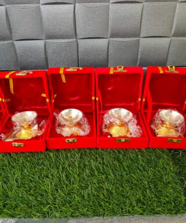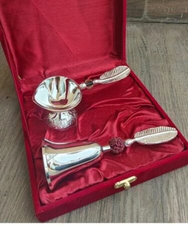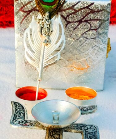 Antique German silver swastik diya with Roli chawal bowl & krishna tilak stick combo